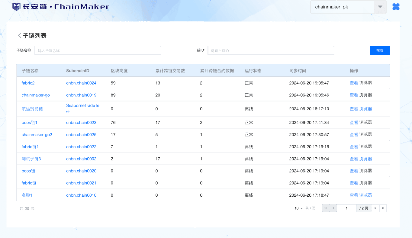 | 子链管理 | 子链筛选 | 子链名称、subchain ID筛选 |
