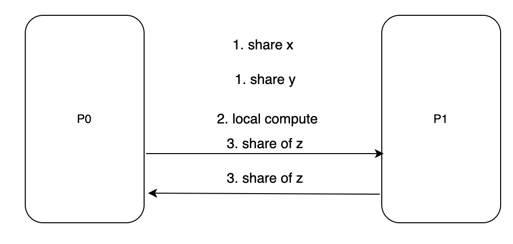 - P0与P1互相发送各自的[z]分片,还原出明文z