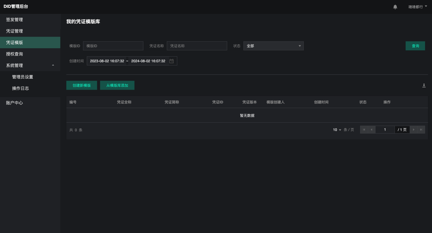 DID管理台核心功能包括:「凭证模板」、「签发管理」、「凭证管理 」、「系统管理」、「账户中心」、「授权查询」,并且DID运营中心的DID管理台额外具有「机构管理」的功能。