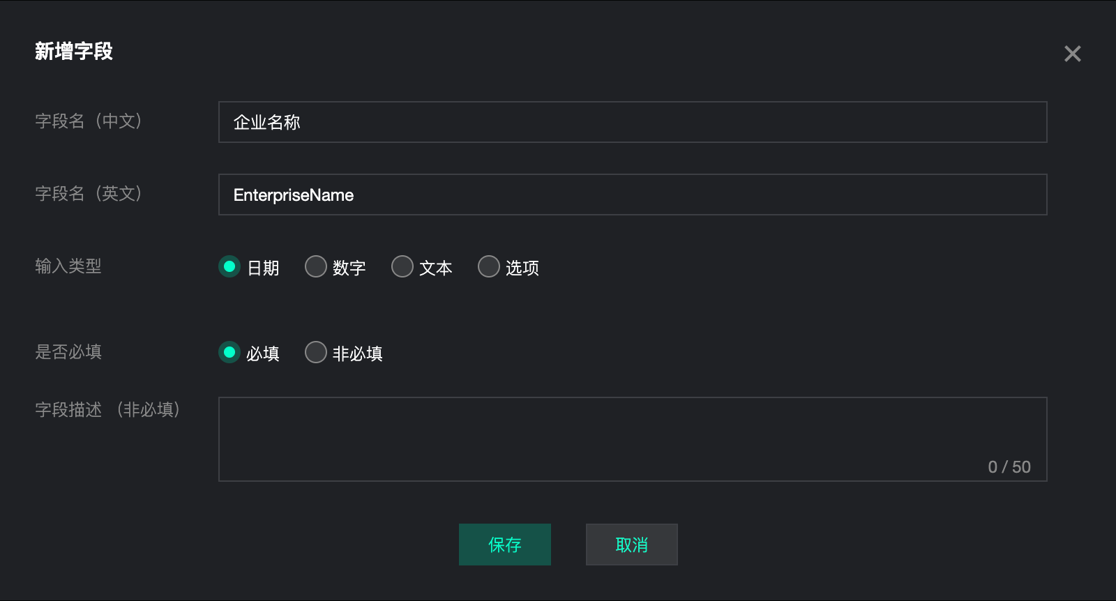 用户点击“新增字段”