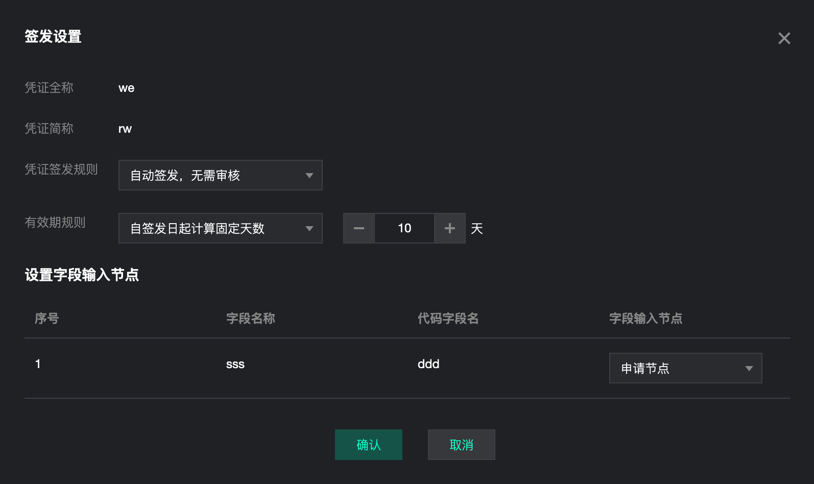 用户对凭证模板中的字段进行设置。